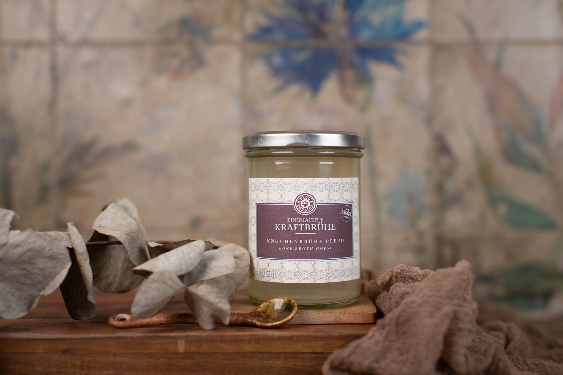 Este caldo de huesos se cocina lentamente durante más de 18 horas para extraer de los huesos de caballo nutrientes esenciales como aminoácidos, minerales, colágeno, glucosamina y condroitina.